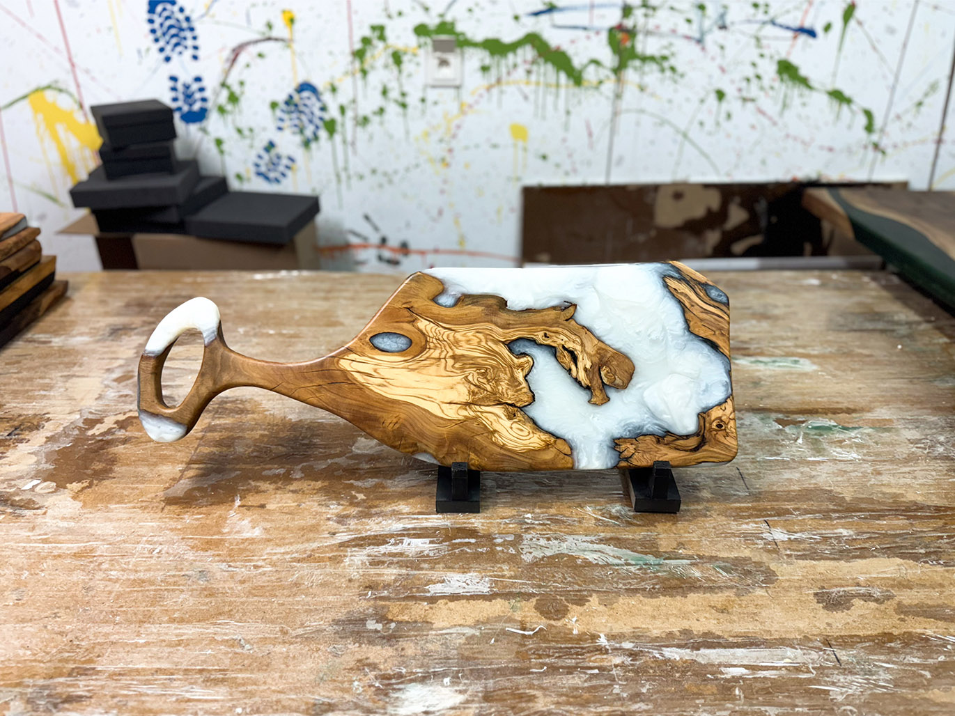 Oblikovana kako bi zadržala autentičnu liniju maslinovog drveta, čije bogate šare ulaze u skladan dijalog s matiranom smolom u bijeloj izvedbi. Idealan je izbor za luksuzno posluživanje sireva, delikatesa, voća ili kao dekorativni statement u svakoj kuhinji.
